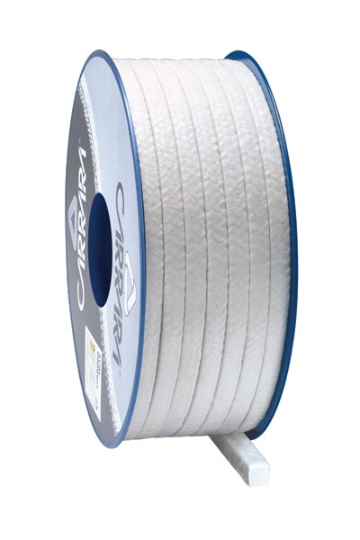 Composition Synthetic yarns PTFE impregnation Special Lubricant Features B1204 Dinawhite is an universal braided packing for paper mills. It's manufactured a composite yarn which combines an extremely high resistance (tensile strength of 27.000 Kg/cm2) with a low friction factor that reduces friction up to 1/10 compared to aramidic yarn. B1204 has an excellent chemical resistance (pH 1'14) and it can be used also in the kraft-processes where it's necessary to have greater chemical resistance than is normally required in paper field. Furthermore, the packing is extremely soft due to an exclusive three-stages lubrication: on the yarn, during the braiding and on the packing at the end using an emulsion of PTFE and lubricant. Applications B1204 Dinawhite is recommended for pumps, pulpers and mixers in paper mills. Suitable for all dynamic water services.